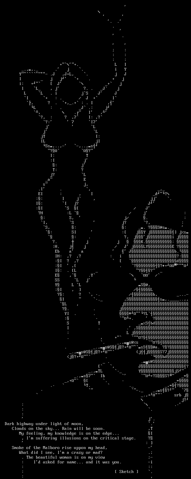 Smoke of the Malboro rise uppon my head, -