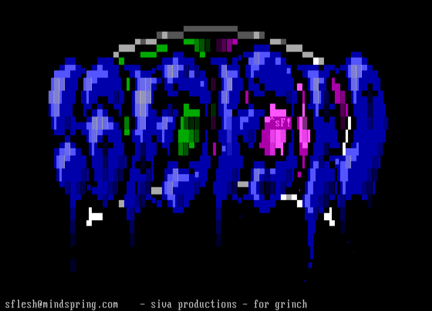 ", "alternativeHeadline": "seed promo - guest artist -->", "author": [ { "@type": "Person", "name": "sinful flesh", "sameAs": "https://16colo.rs/artist/sinful flesh" } ], "contentUrl": "https://16colo.rs/pack/seed0897/x1/SF!SEED.ANS.png", "contentSize": 22, "thumbnail": "https://16colo.rs/pack/seed0897/tn/SF!SEED.ANS.png", "thumbnailUrl": "https://16colo.rs/pack/seed0897/tn/SF!SEED.ANS.png", "text": " sF! \n sflesh@mindspring.com - siva productions - for grinch \n" }
