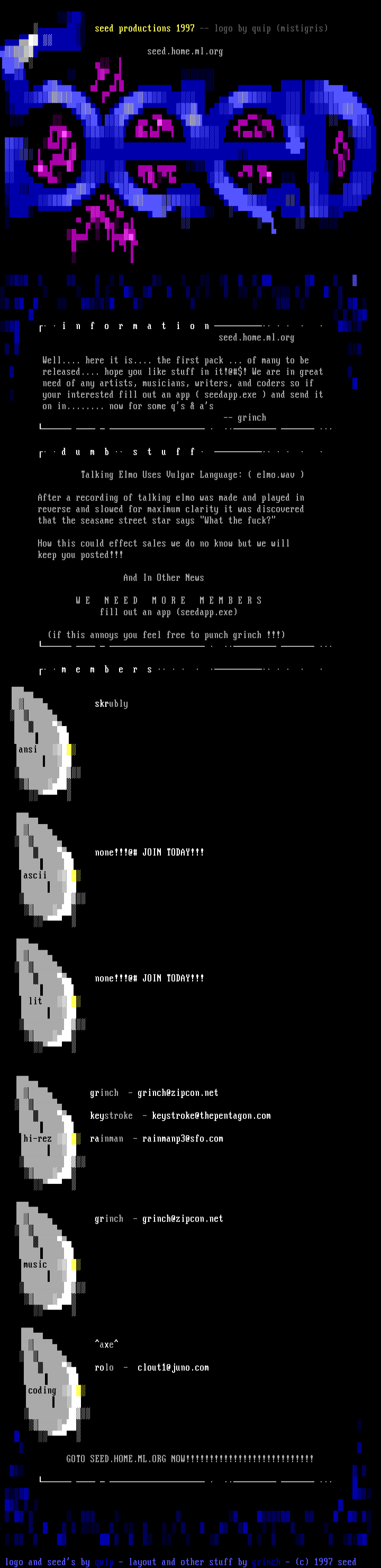 logo and seeds by quip - layout and other stuff by grinch - c 1997 seed
