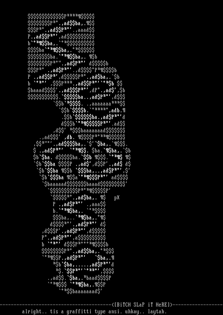 ----------------------------------------BiTCH SLaP iT HeRE------------------ alright.. tis a graffitti type ansi. uhkay.. laytah.