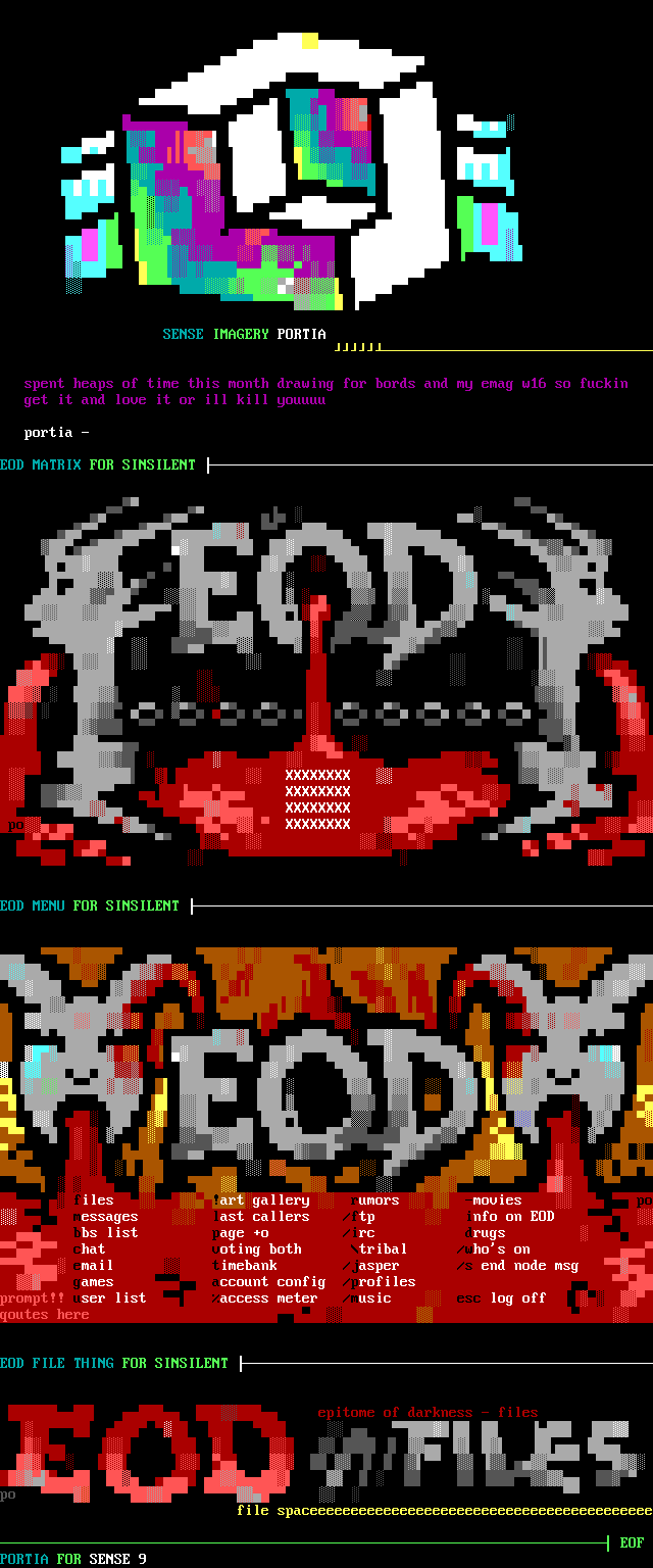 files !artgallery rumors -movies po messages last callers /ftp info on EOD bbs list page +o /irc drugs chat voting both tribal /whos on email timebank /jasper /s end node msg games account config /profiles prompt!! user list access meter /music esc log off qoutes here