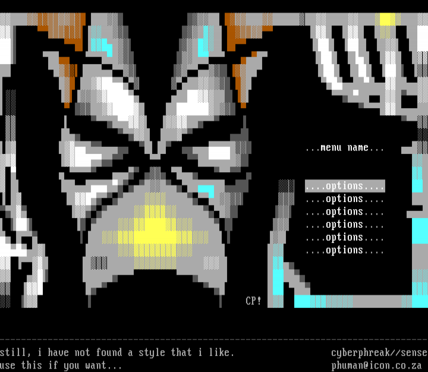 --------------------------------------------------------------------------------still, i have not found a style that i like. cyberphreak//senseuse this if you want... phuman@icon.co.za