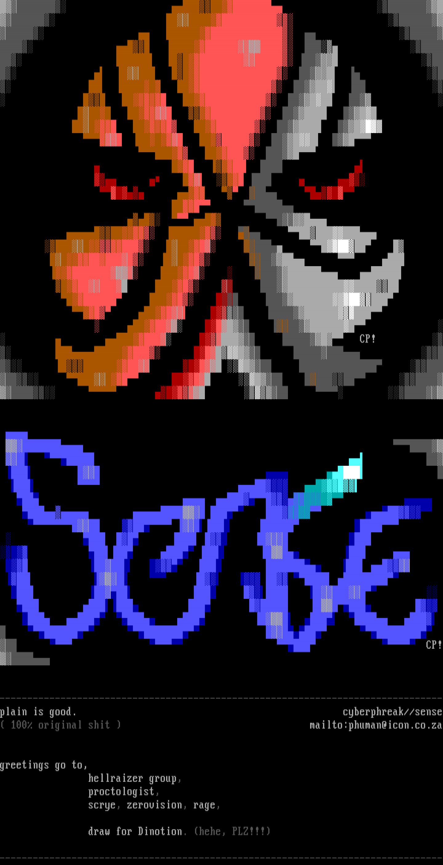 --------------------------------------------------------------------------------plain is good. cyberphreak//sense 100 original shit mailto:phuman@icon.co.za
