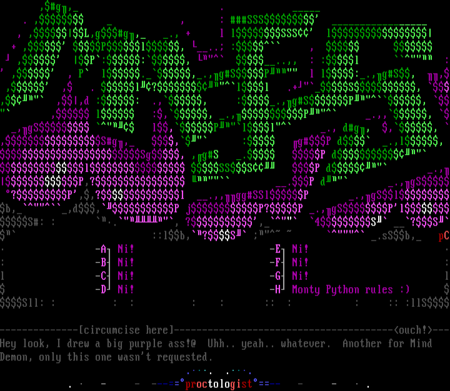 l SSS P d .,P,? .P d .,gS ?P,,?l .,,ggSSlP .,gSlb,,d,P jP?P .,gSPlS: : ., ?, 4S ?S ::lb,?S .sSb, pC -A Ni! -E Ni! : -B Ni! -F Ni! :l -C Ni! -G Ni! l -D Ni! -H Monty Python rules : Sll: : : : : : :: : : :: :llS