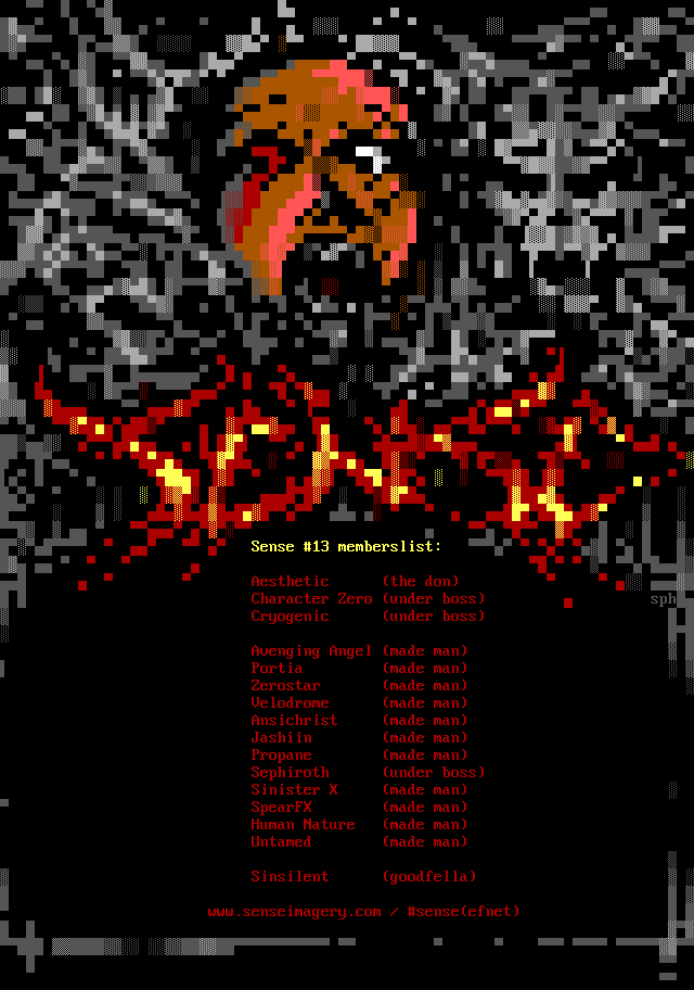 Sense 13 memberslist: Aesthetic the don Character Zero under boss sph Cryogenic under boss Avenging Angel made man Portia made man Zerostar made man Velodrome made man