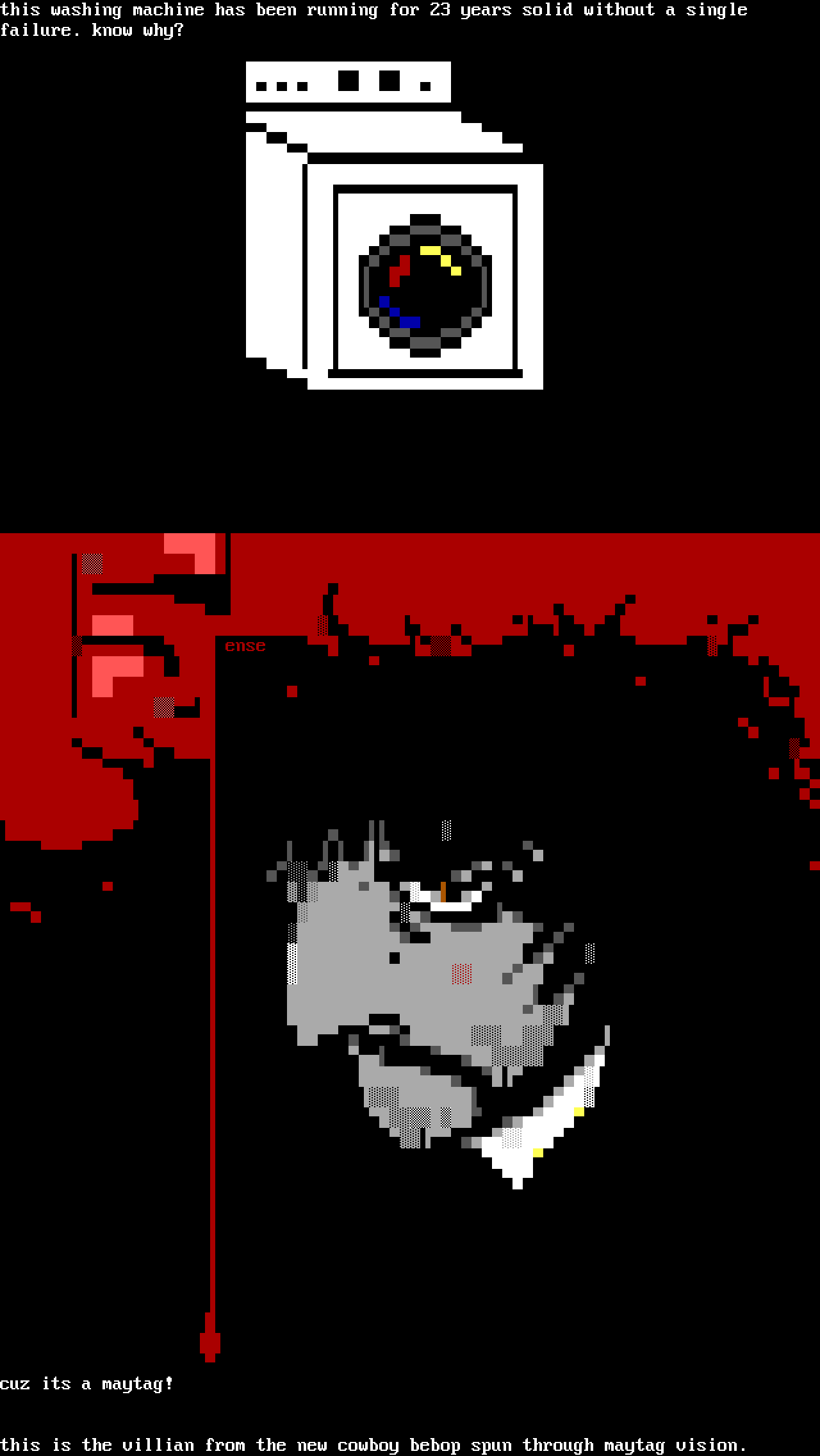 this is the villian from the new cowboy bebop spun through maytag vision.