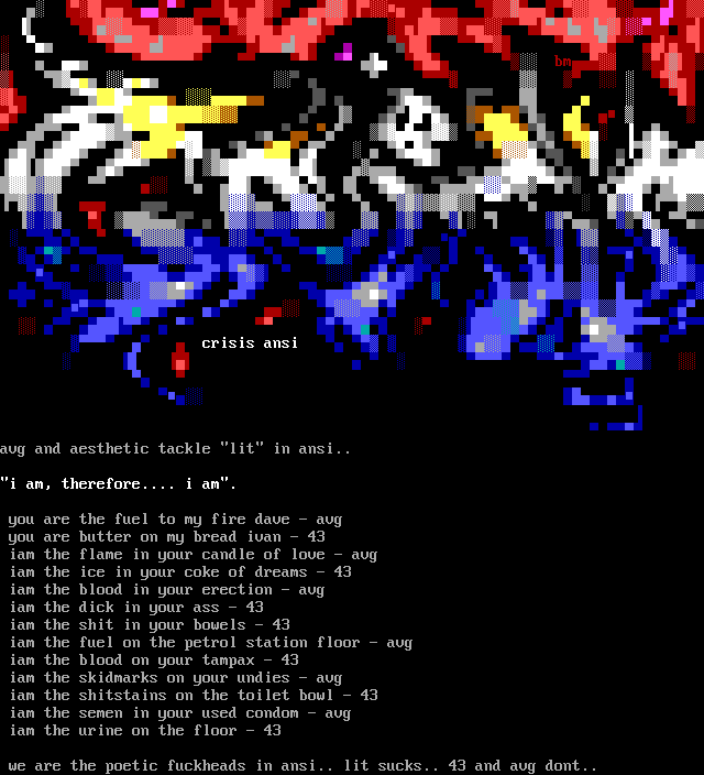 we are the poetic fuckheads in ansi.. lit sucks.. 43 and avg dont..