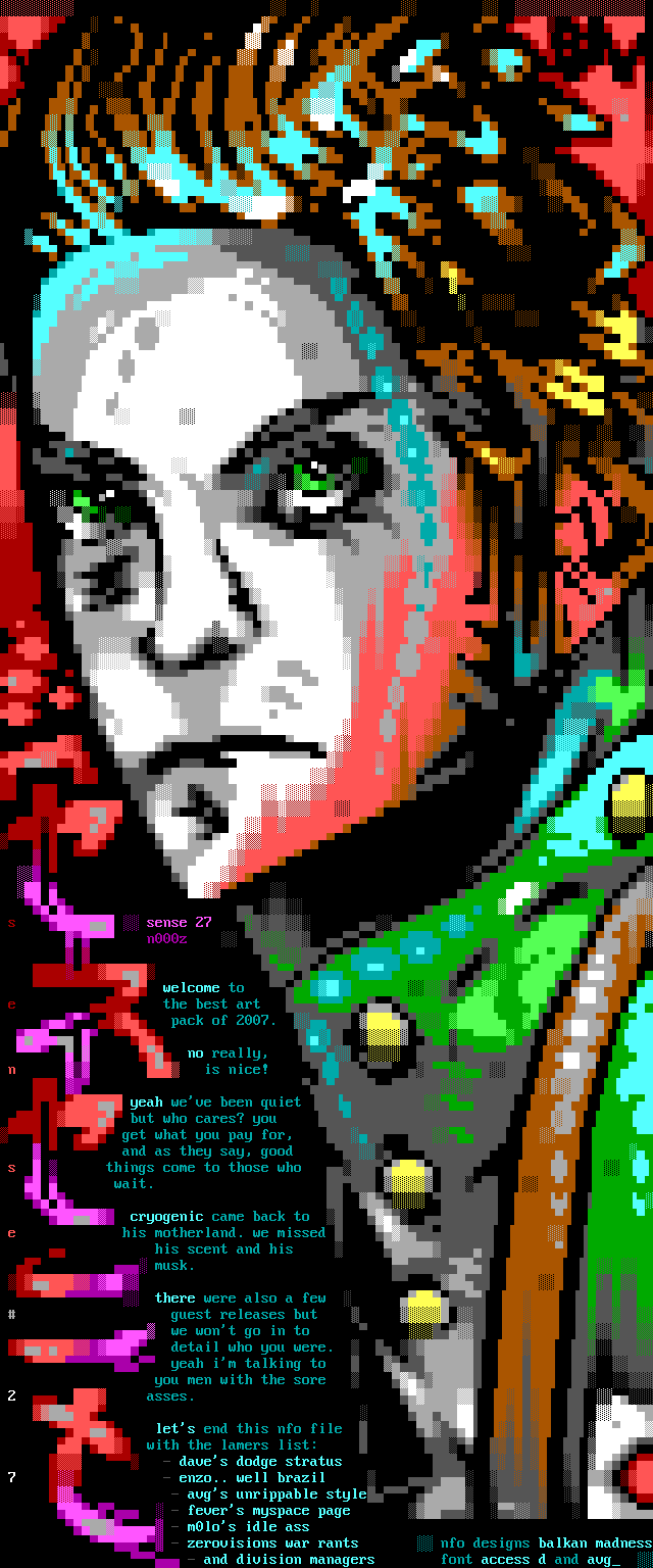 welcome to e the best art pack of 2007. no really, n is nice! yeah weve been quiet but who cares? you get what you pay for, and as they say, good s things come to those who wait. cryogenic came back to e his motherland. we missed his scent and his musk. there were also a few guest releases but we wont go in to detail who you were. yeah im talking to you men with the sore 2 asses. lets end this nfo file with the lamers list: - daves dodge stratus 7 - enzo.. well brazil - avgs unrippable style - fevers myspace page - m0los idle ass