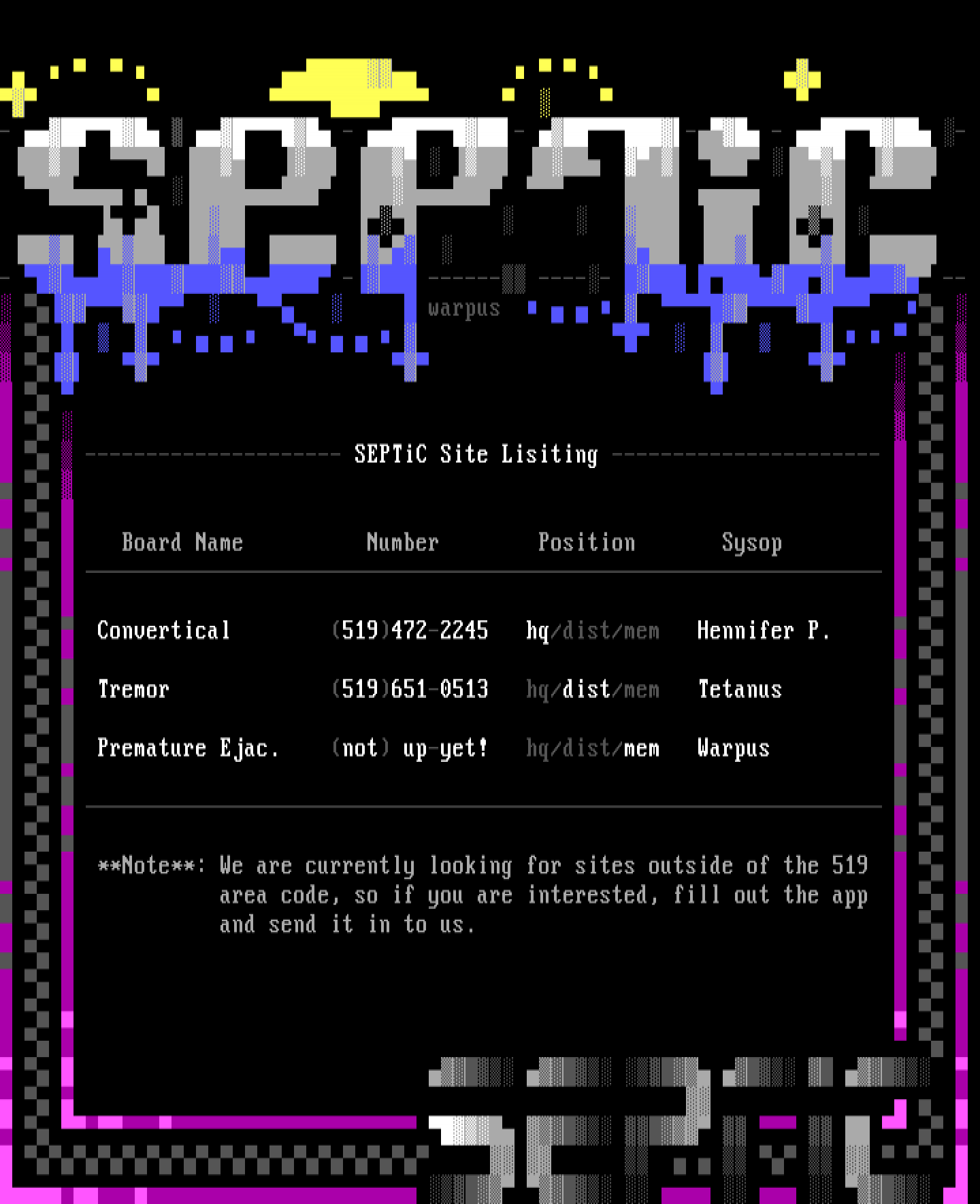--------------------- SEPTiC Site Lisiting ----------------------