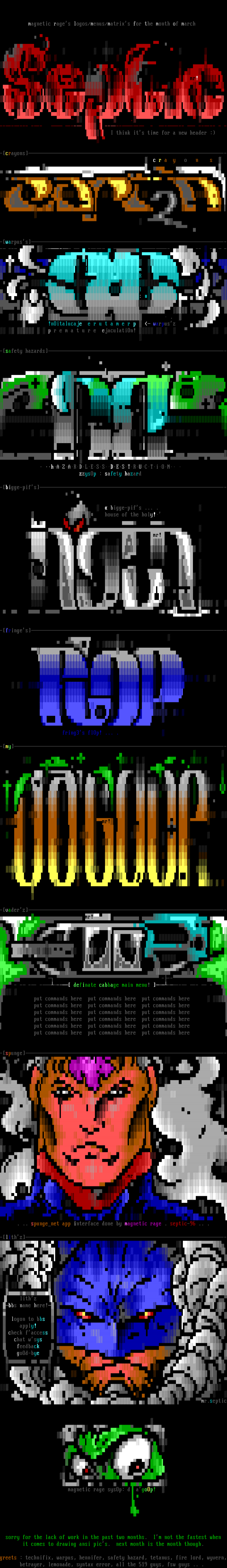 sorry for the lack of work in the past two months. Im not the fastest when it comes to drawing ansi pics. next month is the month though.