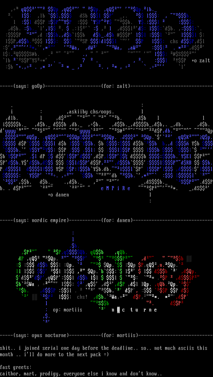 shit.. i joined serial one day before the deadline.. so.. not much asciis this