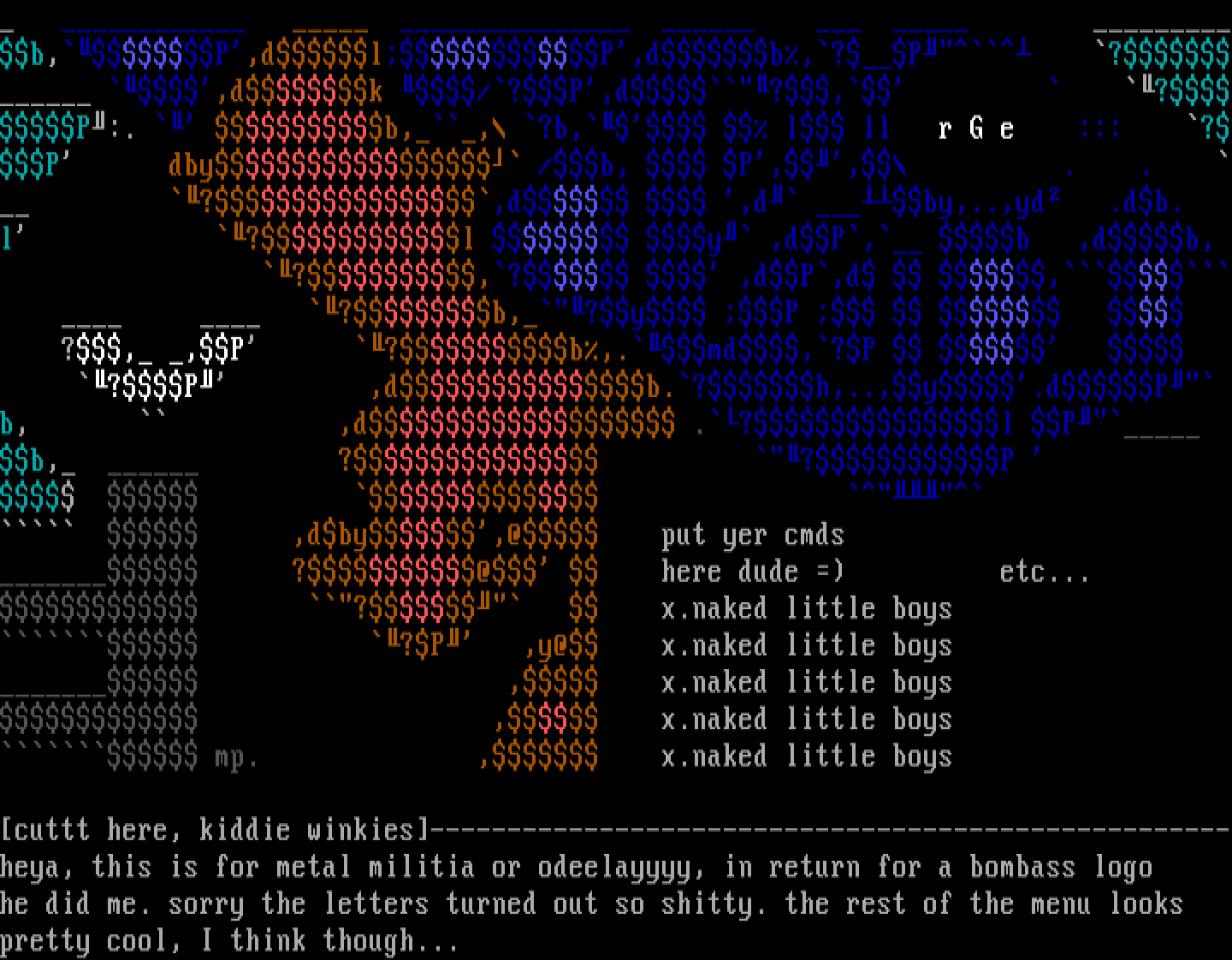 cuttt here, kiddie winkies----------------------------------------------------heya, this is for metal militia or odeelayyyy, in return for a bombass logo