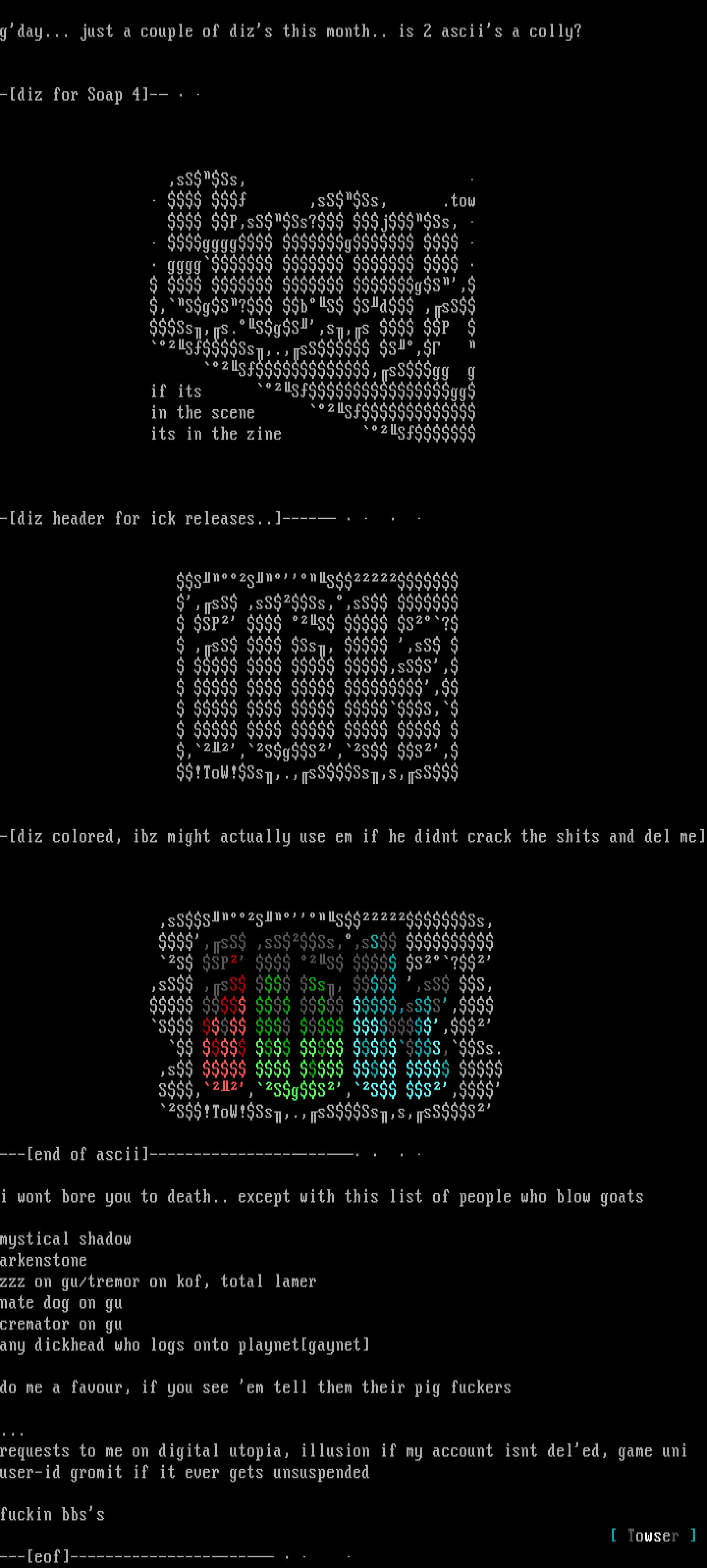 gday... just a couple of dizs this month.. is 2 asciis a colly?