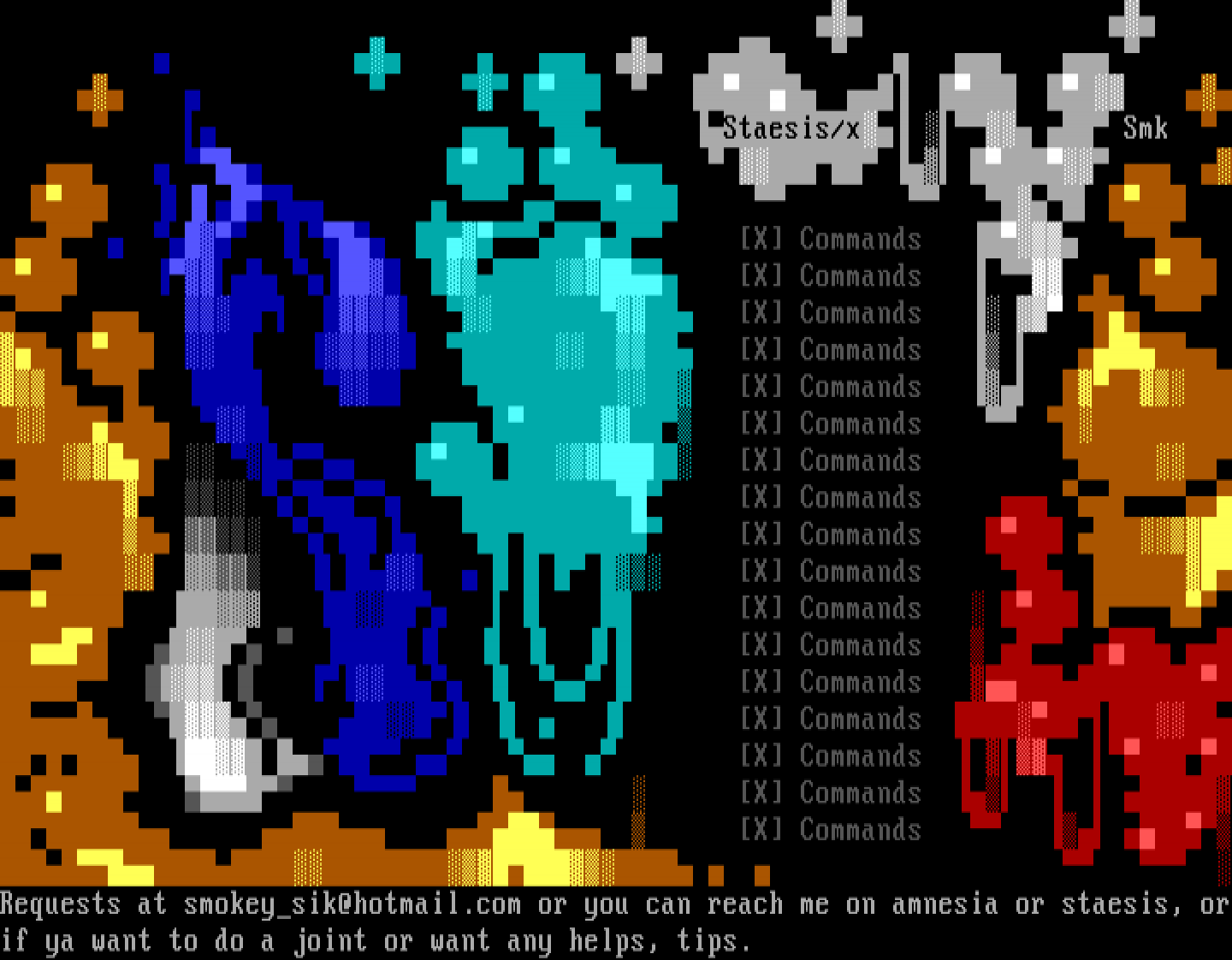 X Commands X Commands X Commands X Commands Requests at smokeysik@hotmail.com or you can reach me on amnesia or staesis, orif ya want to do a joint or want any helps, tips.