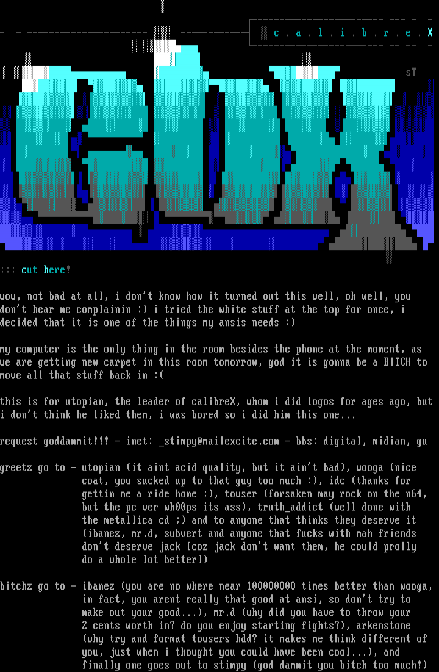 request goddammit!!! - inet: stimpy@mailexcite.com - bbs: digital, midian, gu