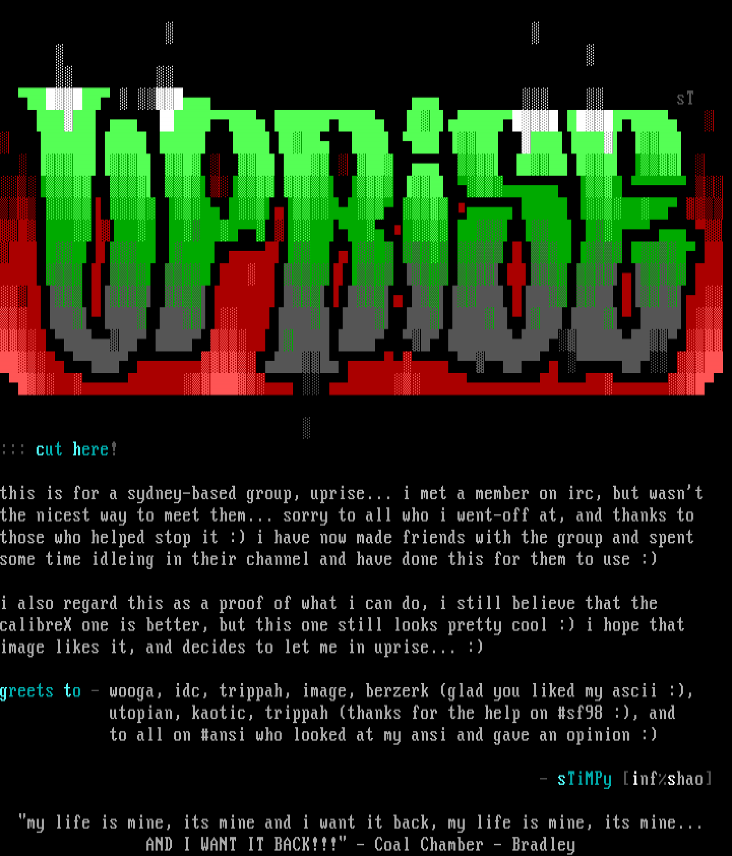 this is for a sydney-based group, uprise... i met a member on irc, but wasnt