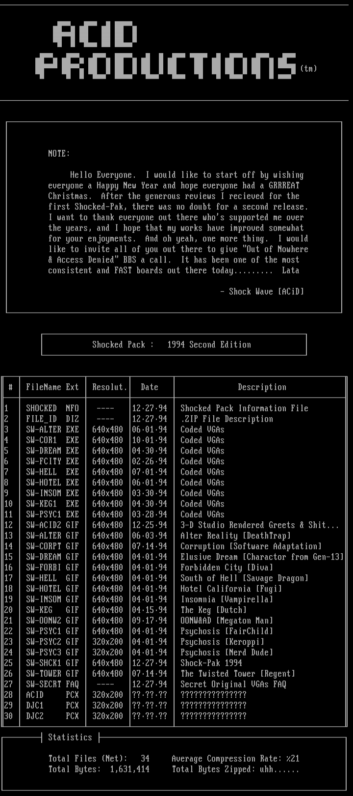 1 SHOCKED NFO ---- 122794 Shocked Pack Information File