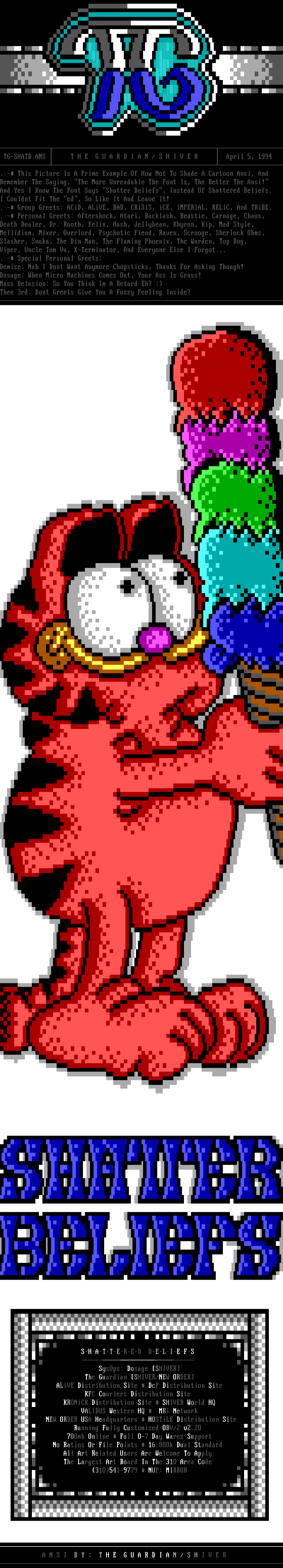 SHATTERED BELIEFS SysOps: Dosage SHIVER The Guardian SHIVER/NEW ORDER ALiVE Distribution Site DcP Distribution Site KFC Couriers Distribution Site KRONiCK Distribution Site SHIVER World HQ VALiDUS Western HQ MRi Network NEW ORDER USA Headquarters HOSTiLE Distribution Site Running Fully Customized OBV/2 v2.2O 7OOmb Online Full O-7 Day Warez Support No Ratios Or File Points 16.8OOk Dual Standard All Art Related Users Are Welcome To Apply The Largest Art Board In The 31O Area Code 31O541-9779 NUP: MIRROR