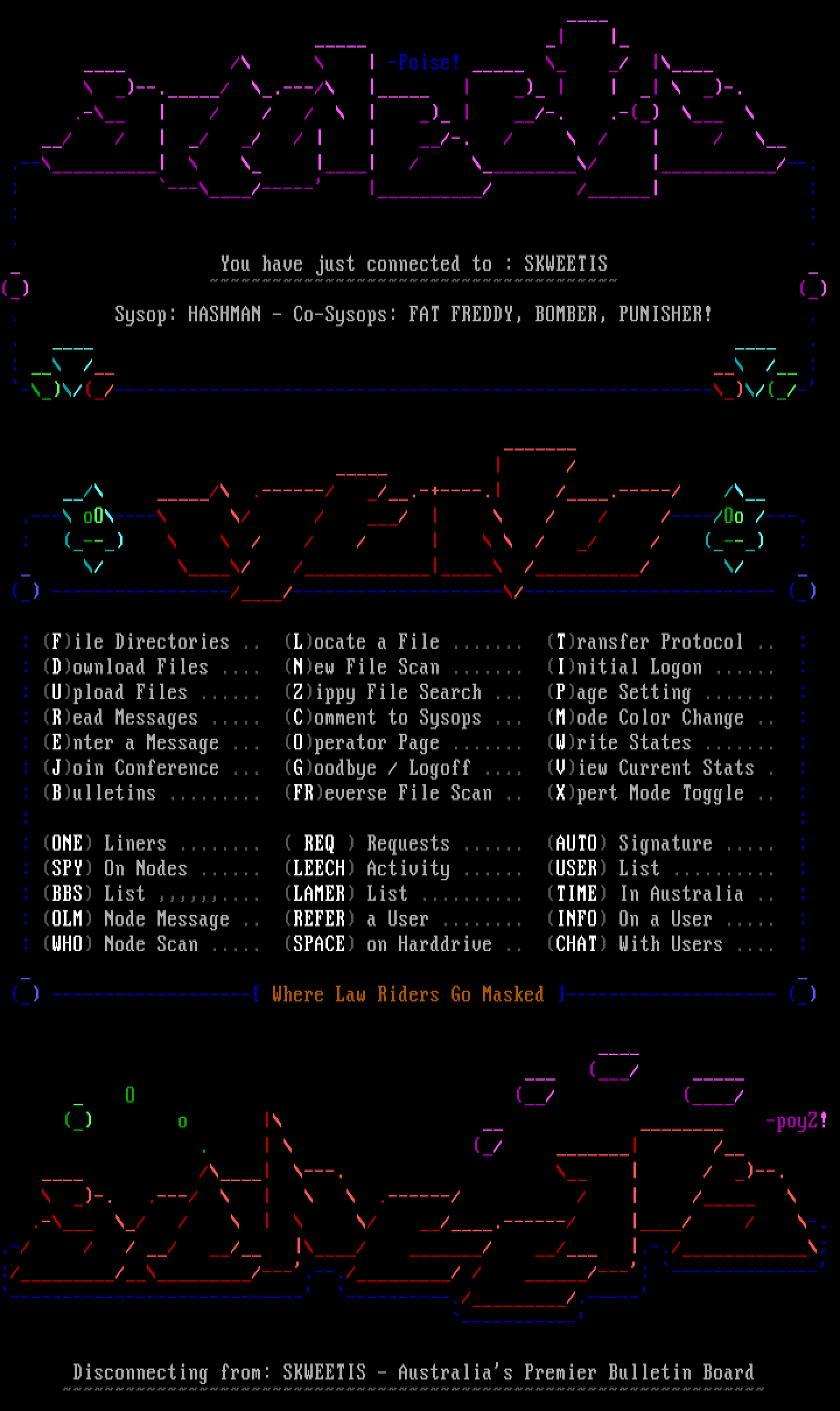 . Sysop: HASHMAN - Co-Sysops: FAT FREDDY, BOMBER, PUNISHER! .