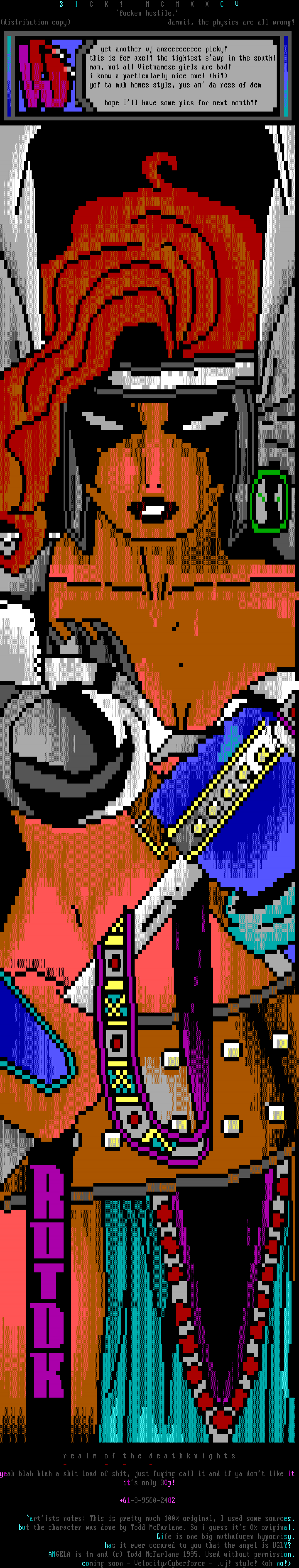 ANGELA is tm and c Todd McFarlane 1995. Used without permission.