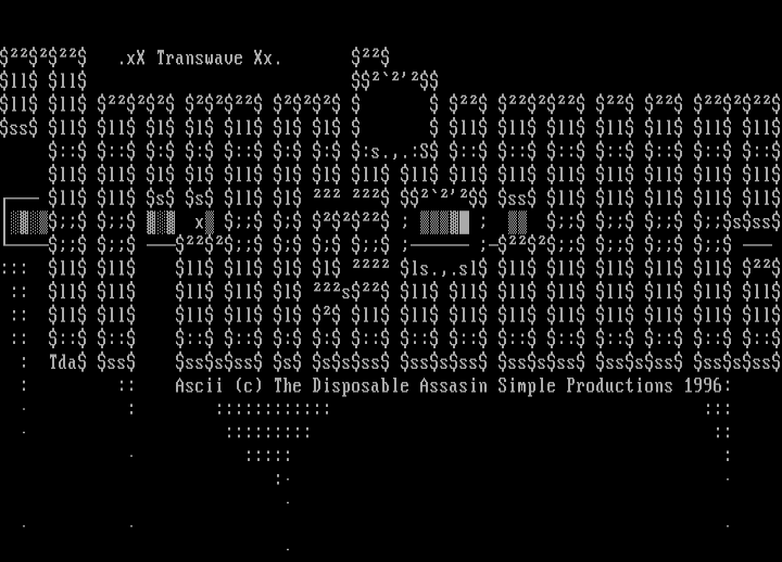 ::: ll ll ll ll l l ls.,.sl ll ll ll ll ll :: ll ll ll ll l s ll ll ll ll ll ll ll ll :: ll ll ll ll l ll ll ll ll ll ll ll ll ll :: :: :: :: :: : : :: :: :: :: :: :: :: :: :: : Tda ss sssss s ssss sssss sssss sssss sssss : :: Ascii c The Disposable Assasin Simple Productions 1996: