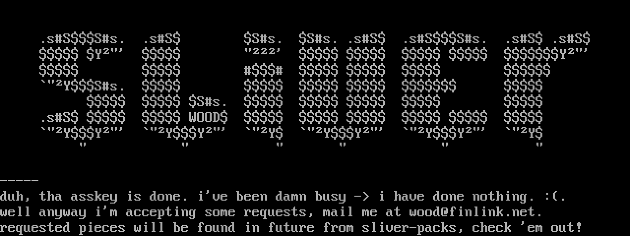 well anyway im accepting some requests, mail me at wood@finlink.net.
