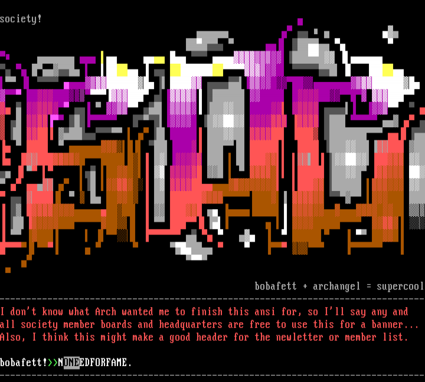 bobafett + archangel supercool--------------------------------------------------------------------------------I dont know what Arch wanted me to finish this ansi for, so Ill say any and