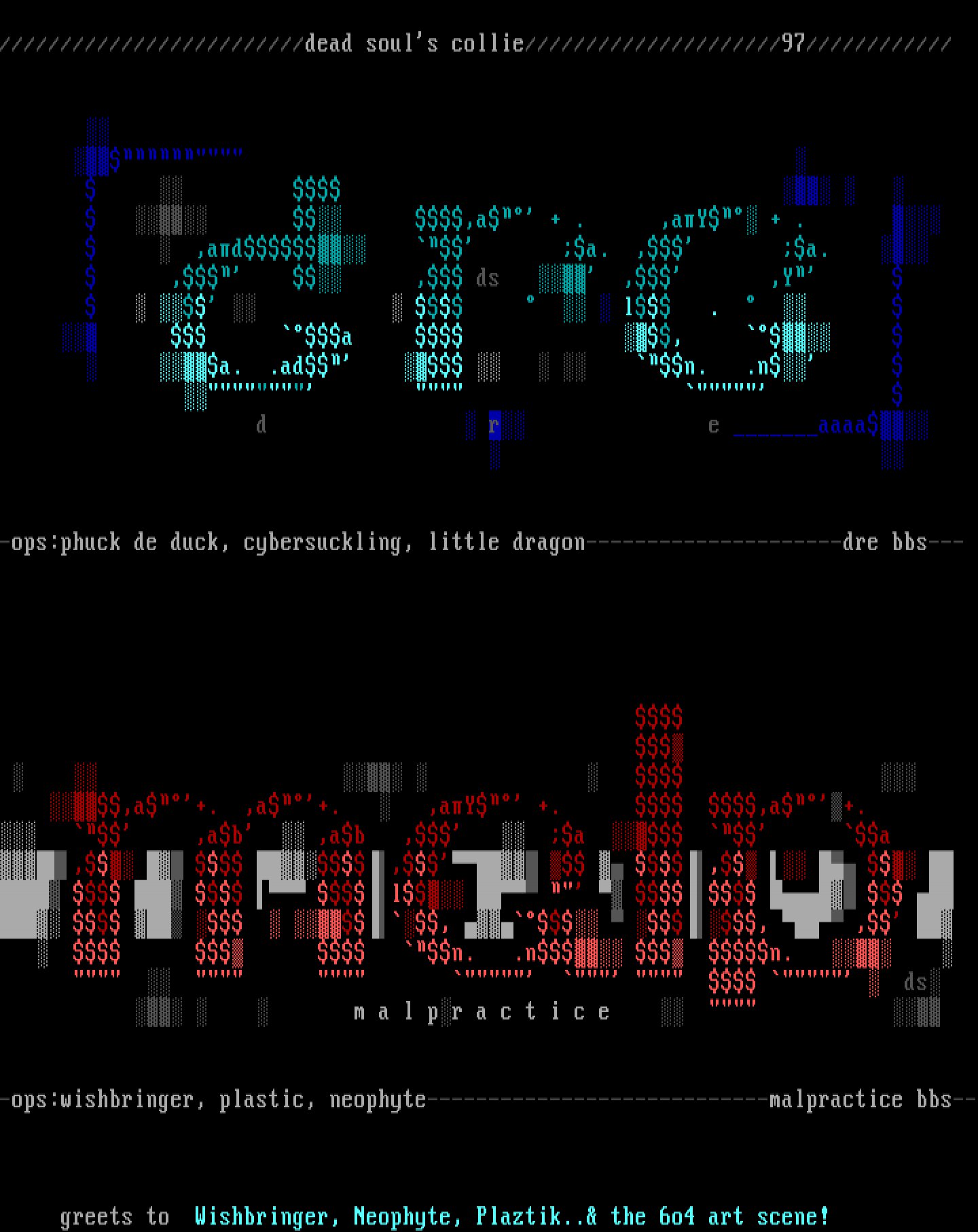 greets to Wishbringer, Neophyte, Plaztik.. the 6o4 art sc