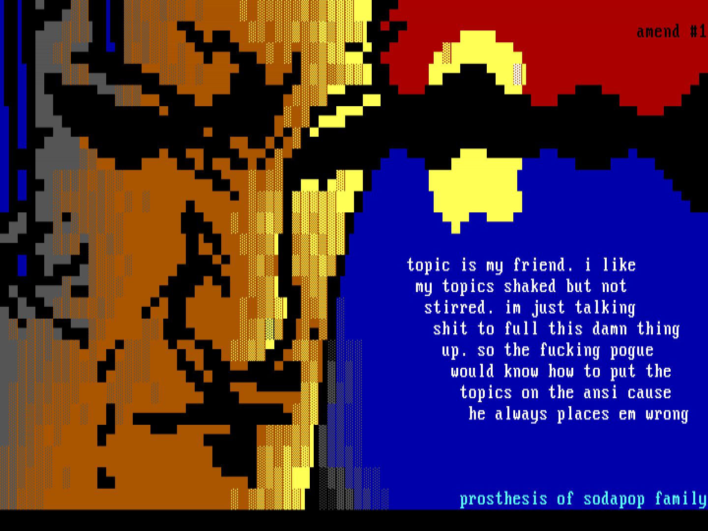 shit to full this damn thing up. so the fucking pogue would know how to put the topics on the ansi cause he always places em wrong prosthesis of sodapop famil