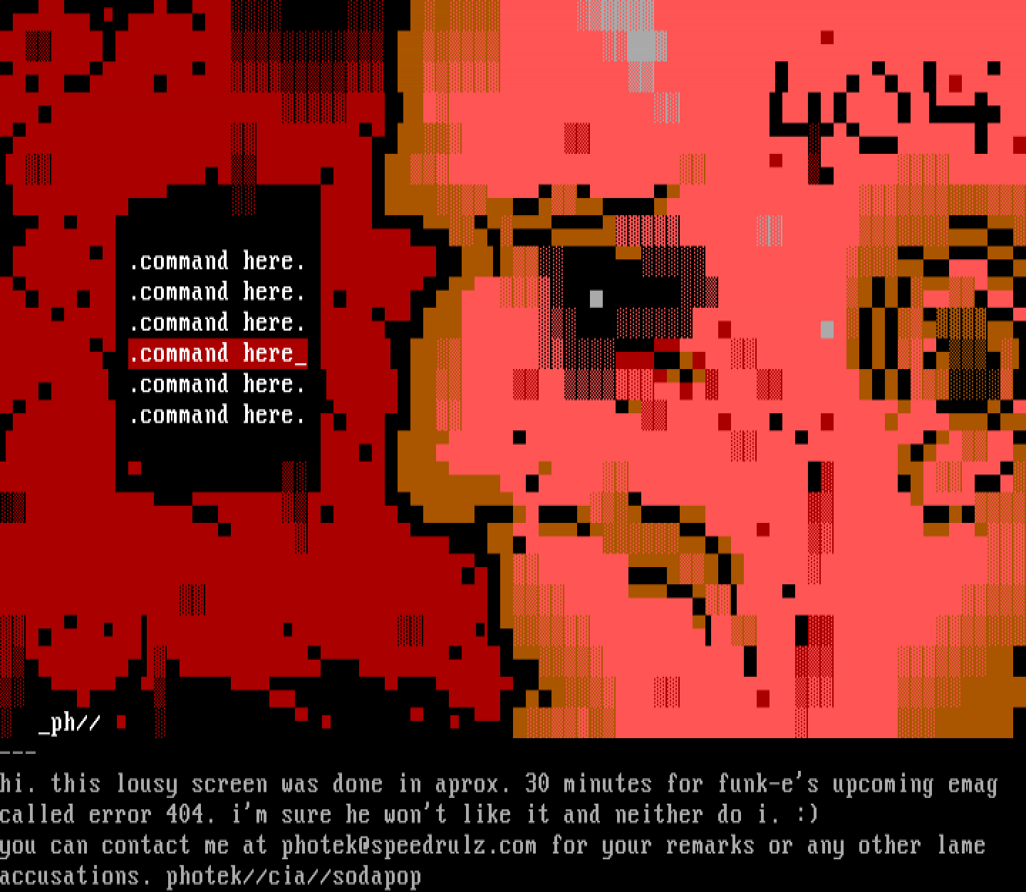 you can contact me at photek@speedrulz.com for your remarks or any other lame accusations. photek//cia//sodapop