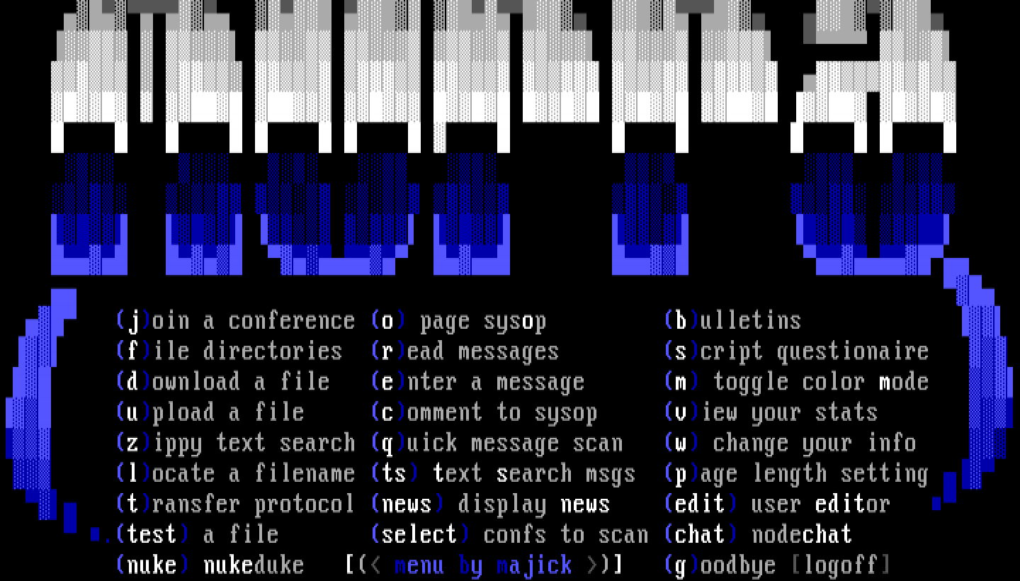 download a file enter a message m toggle color mode upload a file comment to sysop view your stats zippy text search quick message scan w change your info