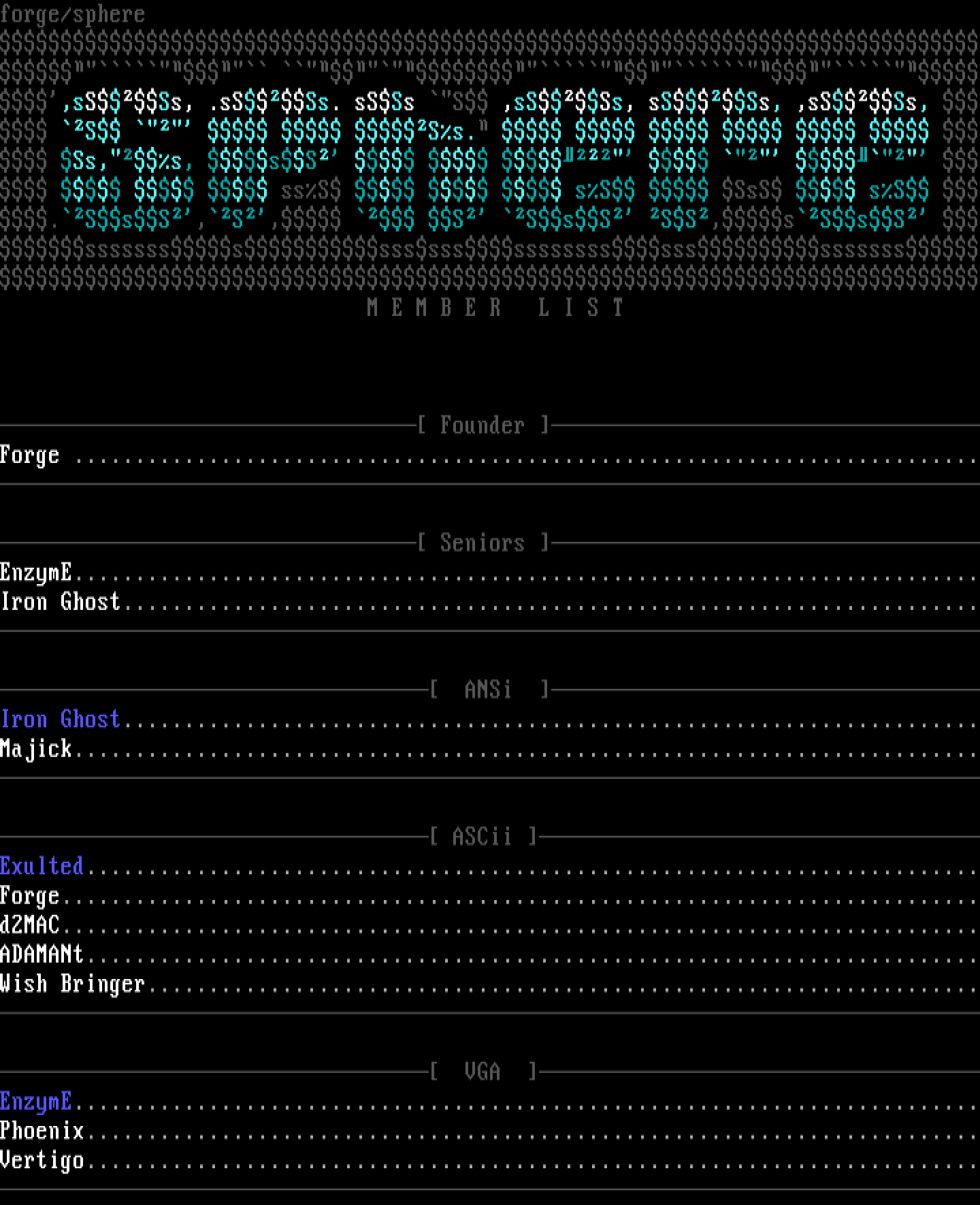 ASCii Exulted.........................................................................Forge...........................................................................d2MAC...........................................................................ADAMANt.........................................................................Wish Bringer....................................................................
