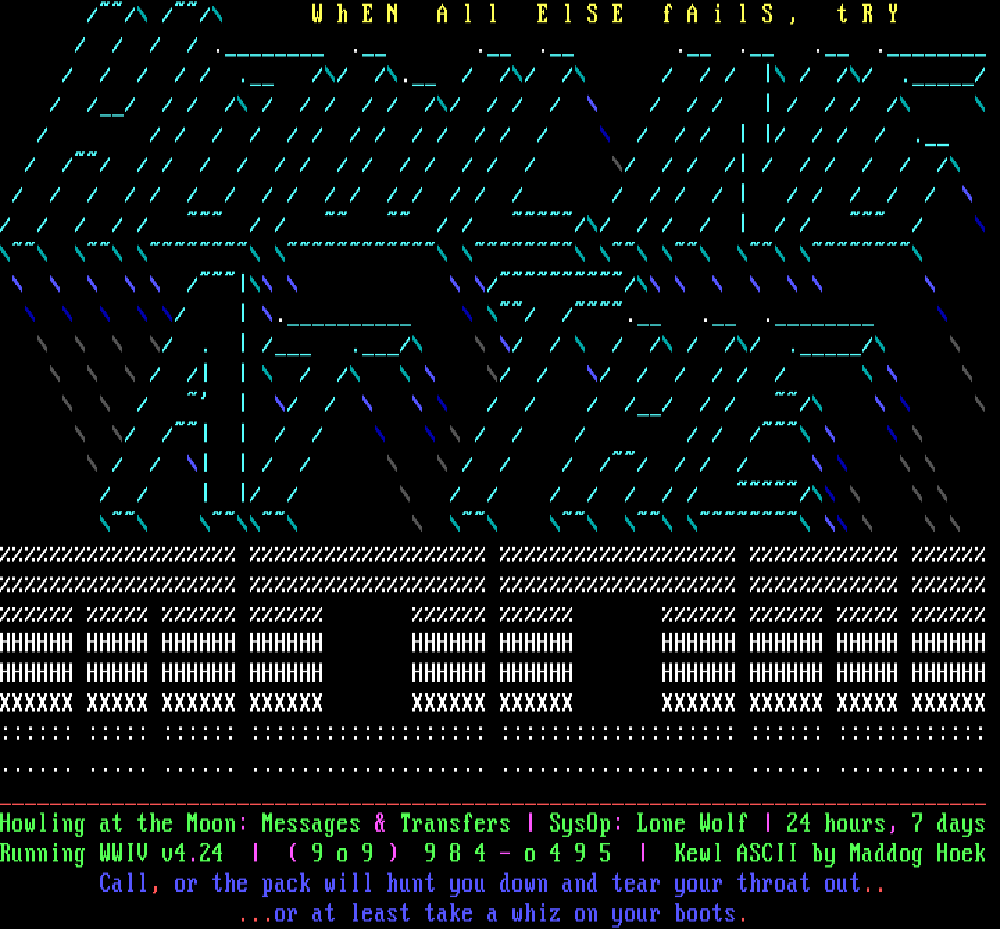 Running WWIV v4.24 9 o 9 9 8 4 - o 4 9 5 Kewl ASCII by Maddog Hoek