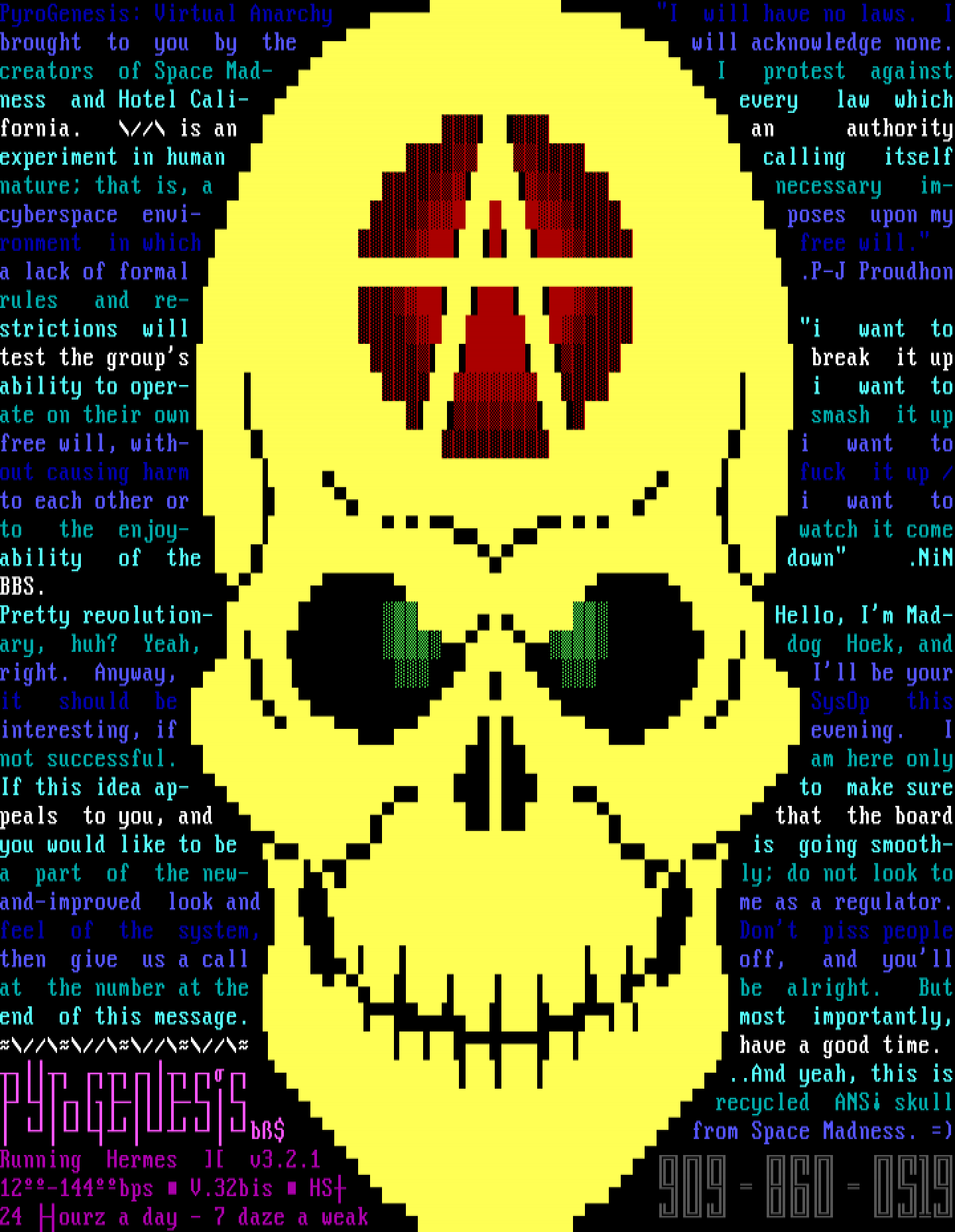 from Space Madness. Running Hermes v3.2.1 12-144bps V.32bis HS 24