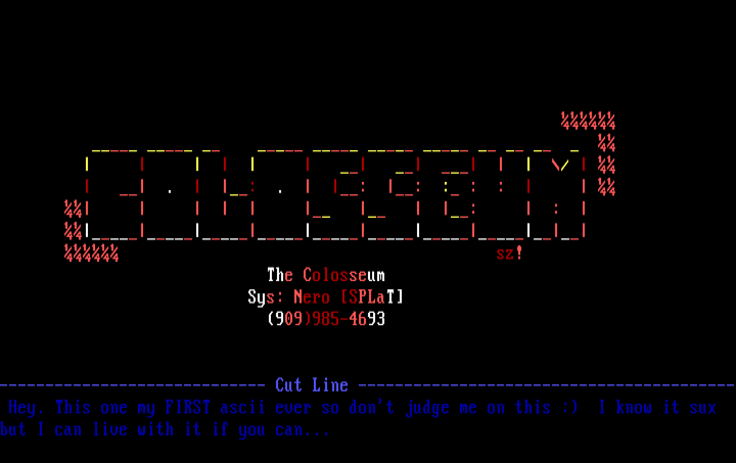 ----------------------------- Cut Line ----------------------------------------- Hey. This one my FIRST ascii ever so dont judge me on this : I know it sux
