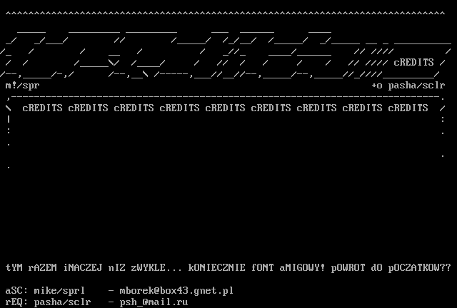 tYM rAZEM iNACZEJ nIZ zWYKLE... kONIECZNIE fONT aMIGOWY! pOWROT dO pOCZATKOW??