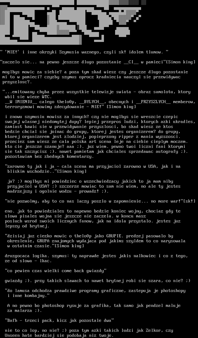 przeciez sam wiesz ze cala polska art scena leje na ciebie cieplym moczem.