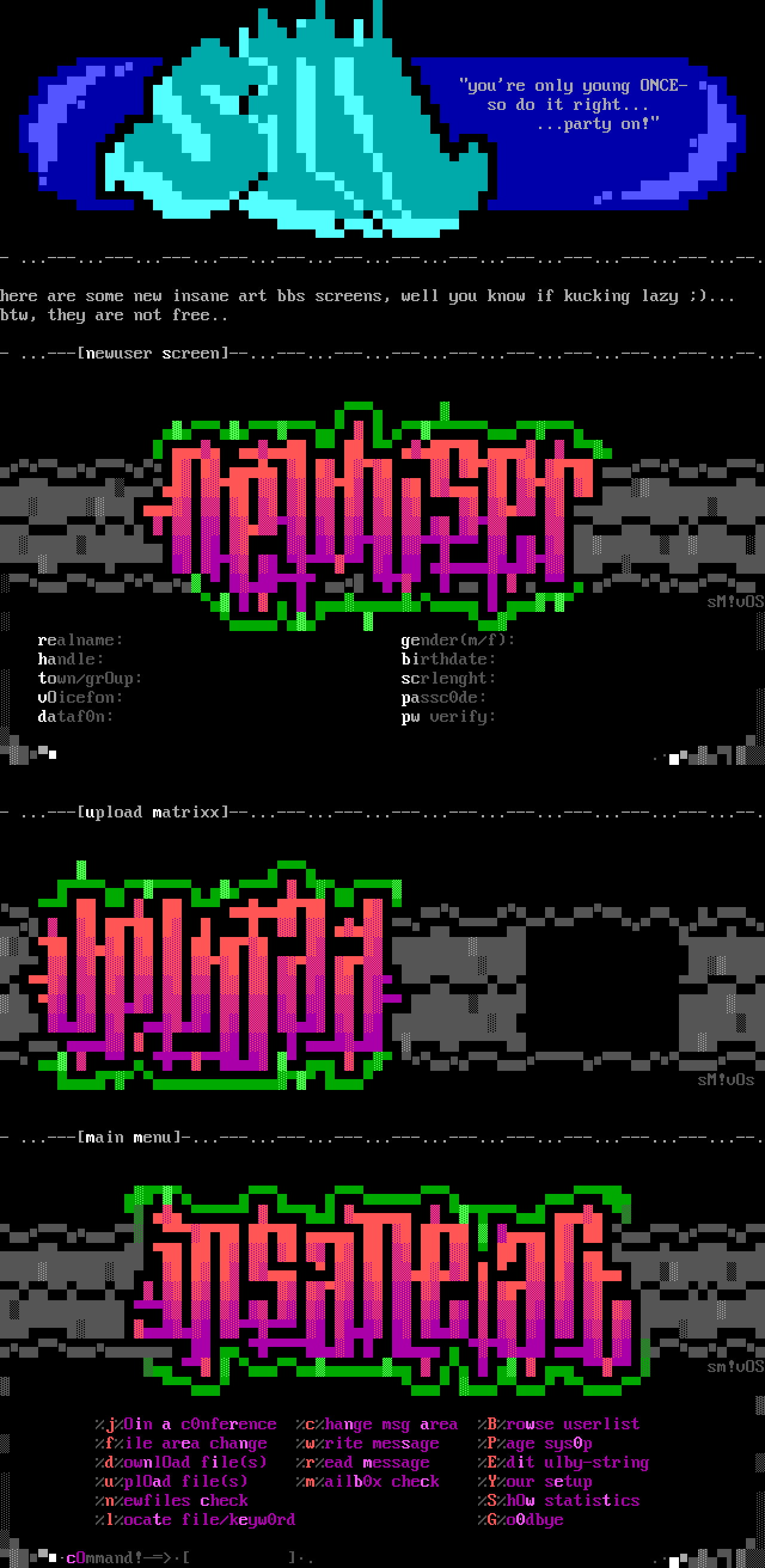 here are some new insane art bbs screens, well you know if kucking lazy