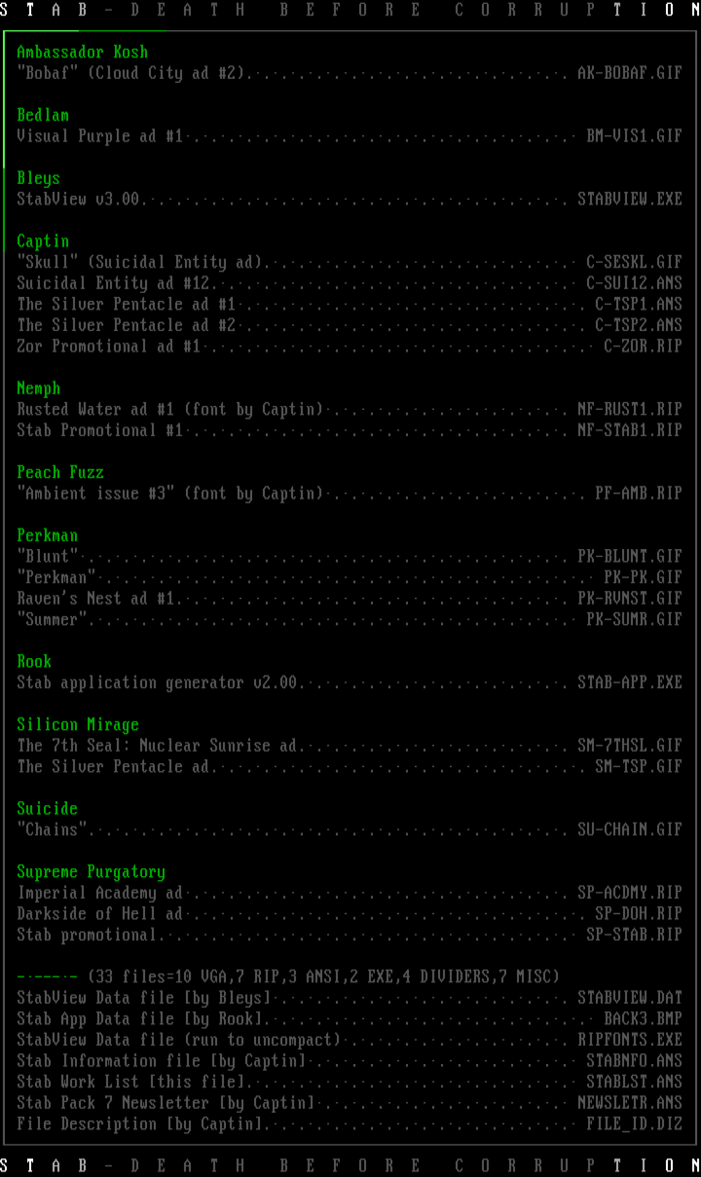 VGA,7 RIP,3 ANSI,2 EXE,4 DIVIDERS,7 MISC St