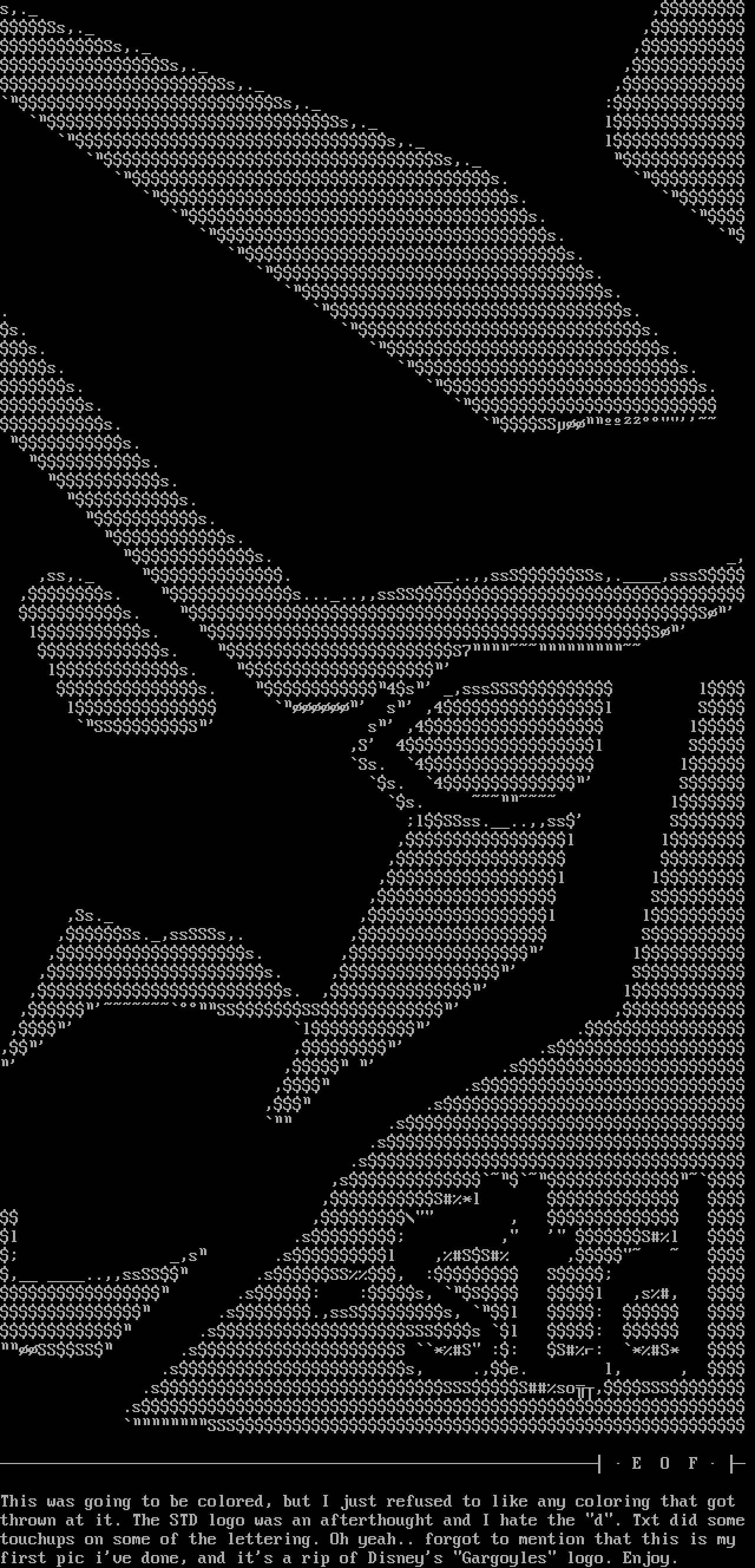 first pic ive done, and its a rip of Disneys Gargoyles logo. Enjoy.