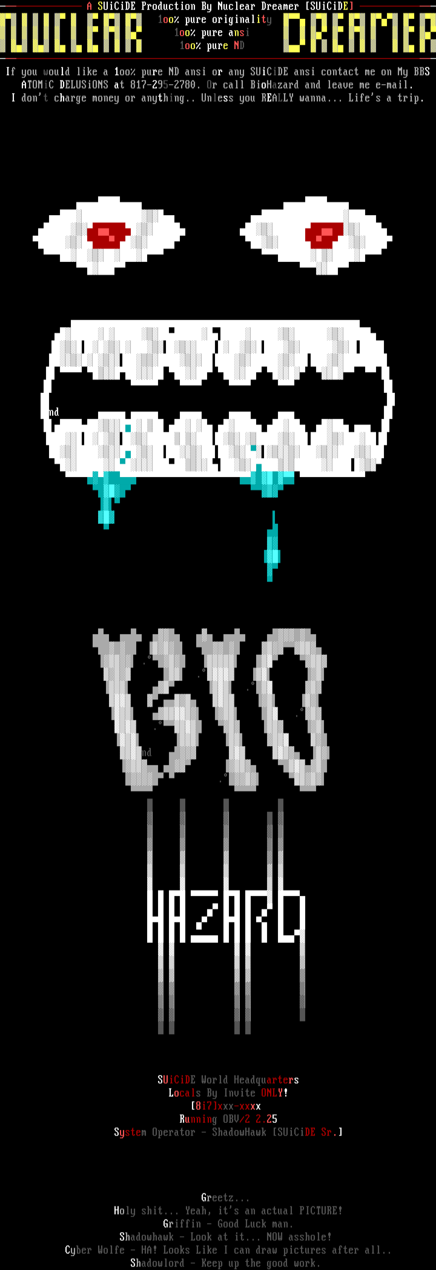 If you would like a 1oo pure ND ansi or any SUiCiDE ansi contact me on My BBS