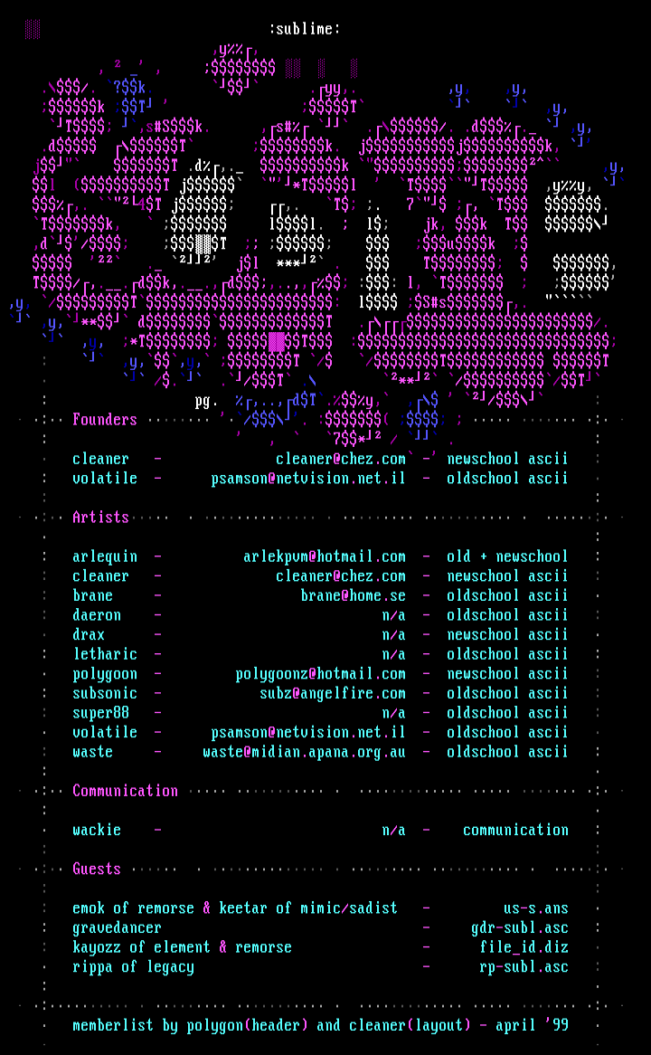: subsonic - subz@angelfire.com - oldschool ascii :
