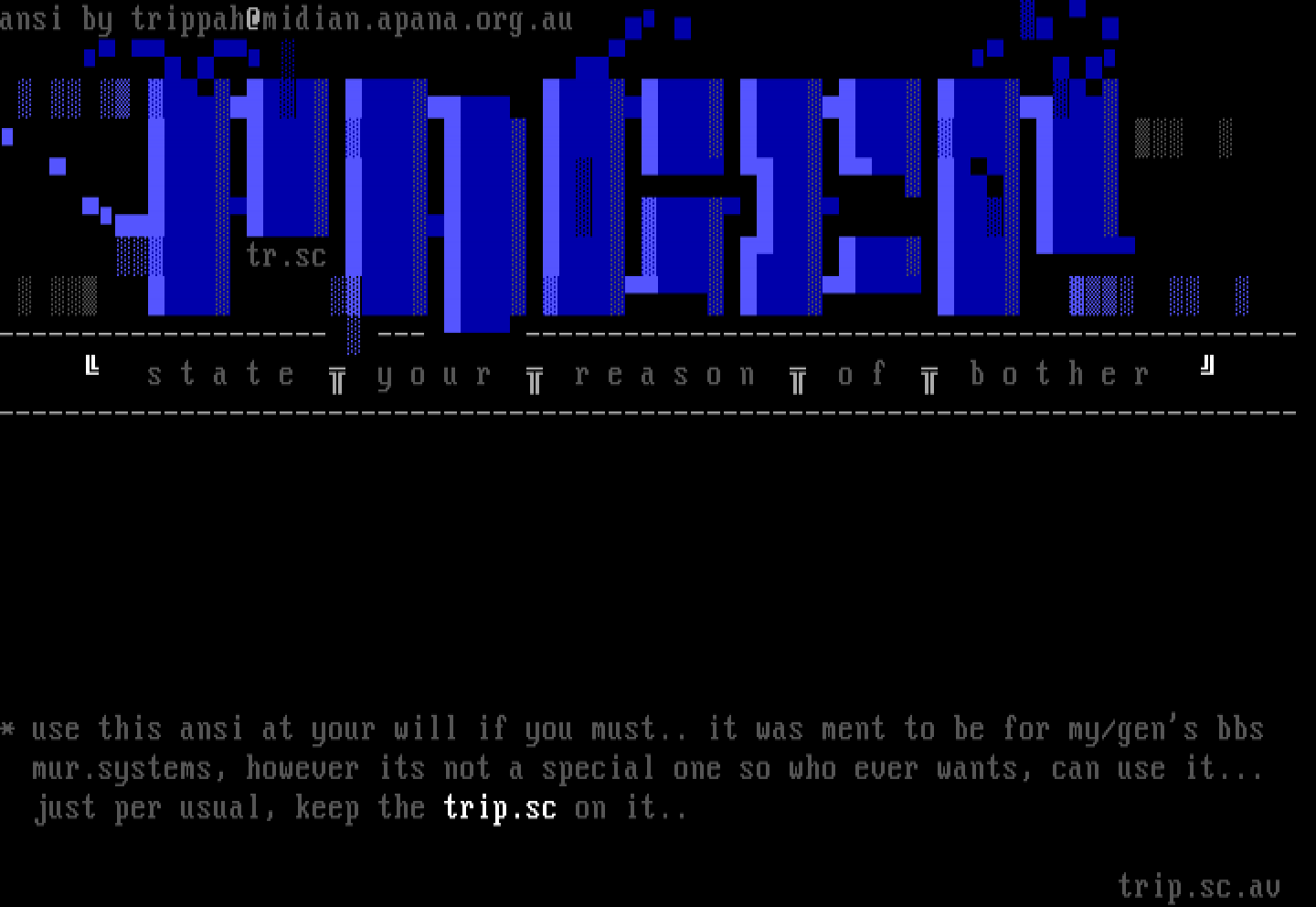 * use this ansi at your will if you must.. it was ment to be for my/gens bbs