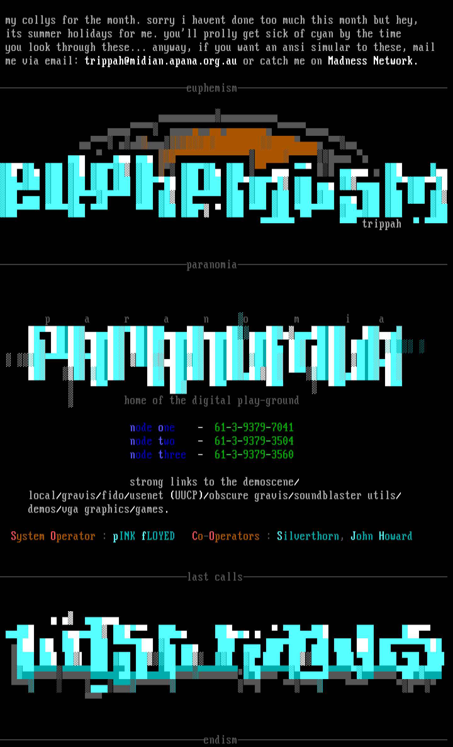 me via email: trippah@midian.apana.org.au or catch me on Madness Network.