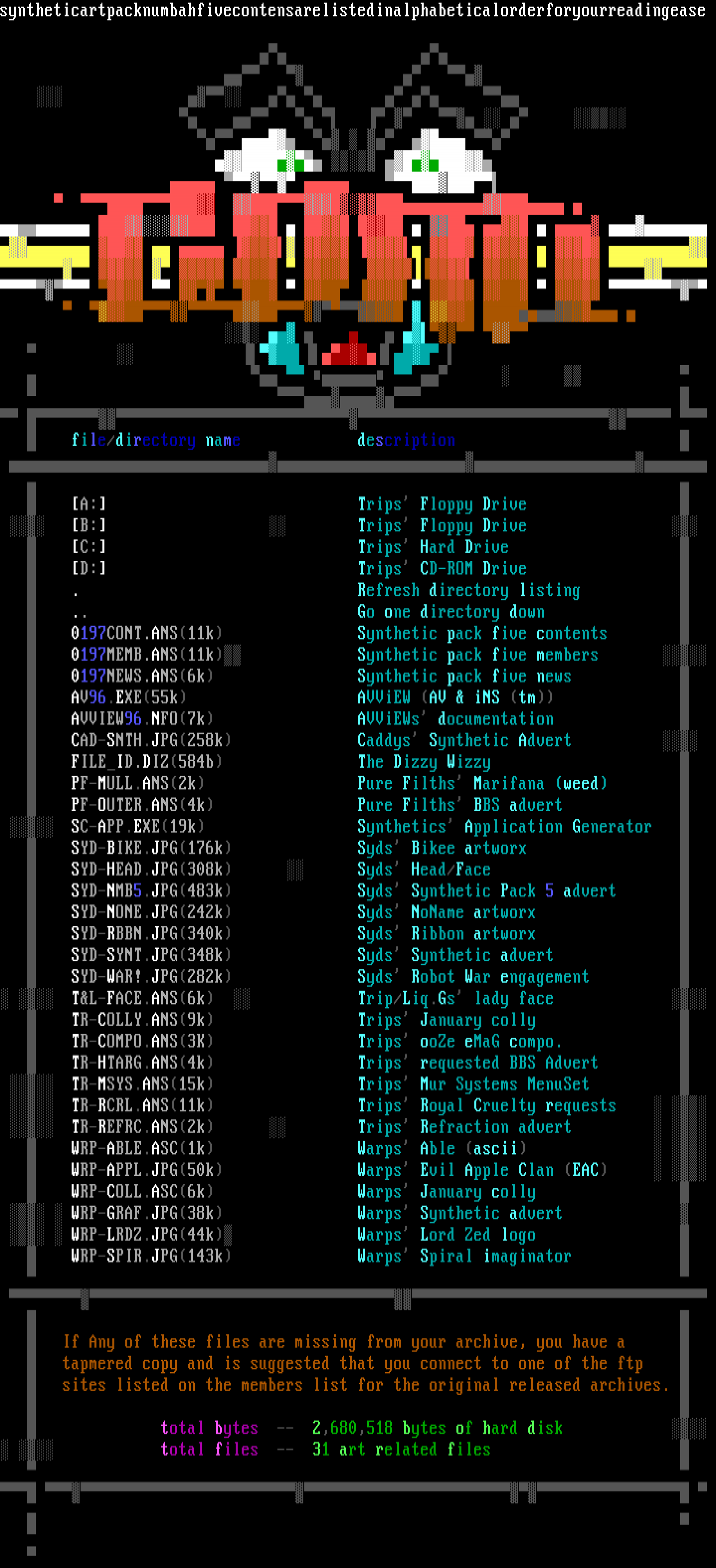 syntheticartpacknumbahfivecontensarelistedinalphabeticalorderforyourreadingease