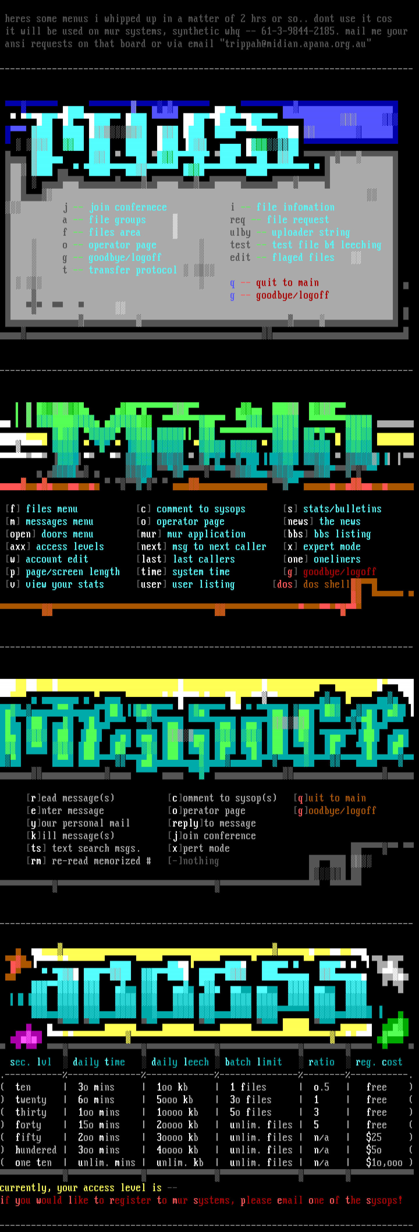 ansi requests on that board or via email trippah@midian.apana.org.au