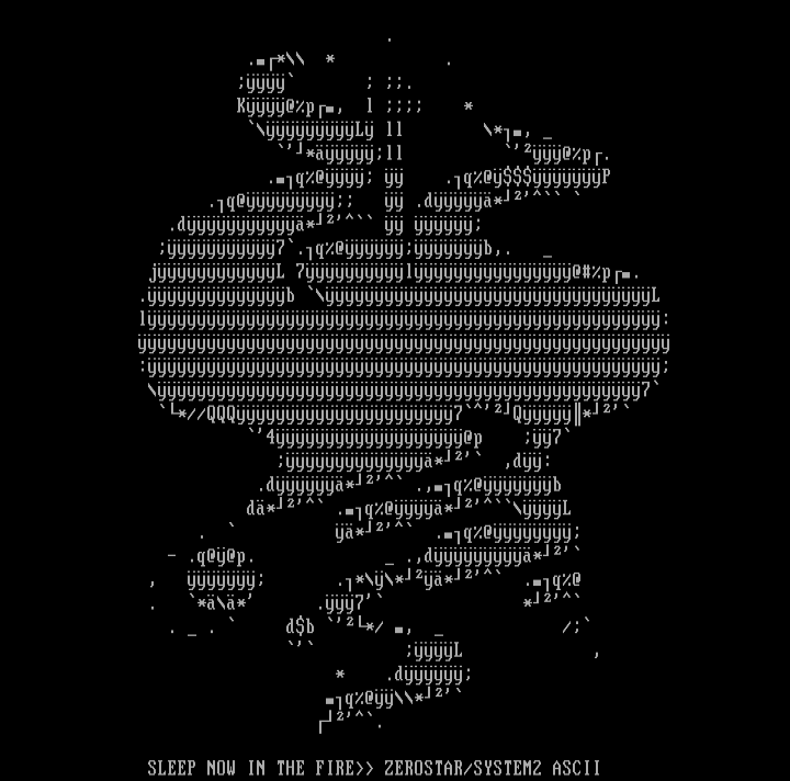 SLEEP NOW IN THE FIRE ZEROSTAR/SYSTEM2 ASCII