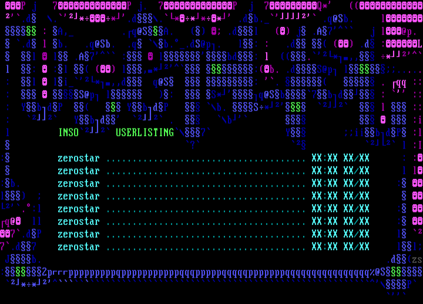 .d l b. .q@Sb. .q b..dS@p. l: : .d .d :L l l .A7 : lbd: l .*,, * l : :l l,* :b. .dS@p l..... : l li*,,d q@S : . . qq :: : S@p l : S*q@Sb7bd : :: : YbdP YbdP b. S* l :: : Ybd . b :i l INSO USERLISTING7 Y iibdP :l ? l :I: zerostar ...................................... XX:XX XX/XX : : zerostar ...................................... XX:XX XX/XX l l:b. zerostar ...................................... XX:XX XX/XX : l zerostar ...................................... XX:XX XX/XX .:l zerostar ...................................... XX:XX XX/XX : q@ ll zerostar ...................................... XX:XX XX/XX : 7.dP zerostar ...................................... XX:XX XX/XX l 7.d7 zerostar ...................................... XX:XX XX/XX ll Jb. .dzs:2ppppppppppqpppppppppppqqqpppppqqqqqpppppppqqqqqqqqqqqqqqqq@S **P