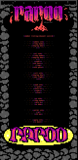 barbq (2) creeping death (19) death parade (1) dj gizmo (1) handyman (2) lord necron (1) marcato (1) mental trip (3) mist (2) morphium (9) robin hud (1) sticky baboon (10) tatoo (1) the demon (1) the stinger (1) transfighter (2)