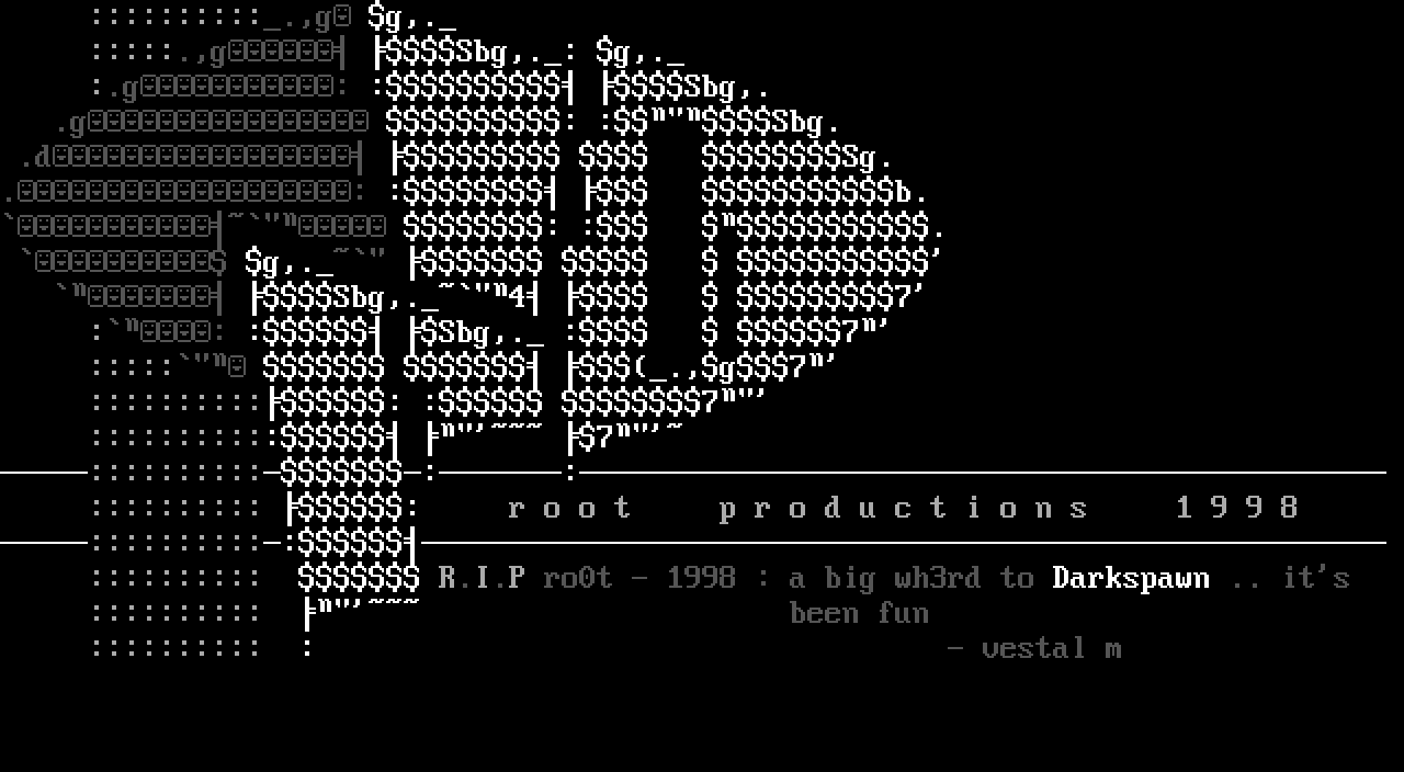:::::::::: R.I.P ro0t - 1998 : a big wh3rd to Darkspawn..its